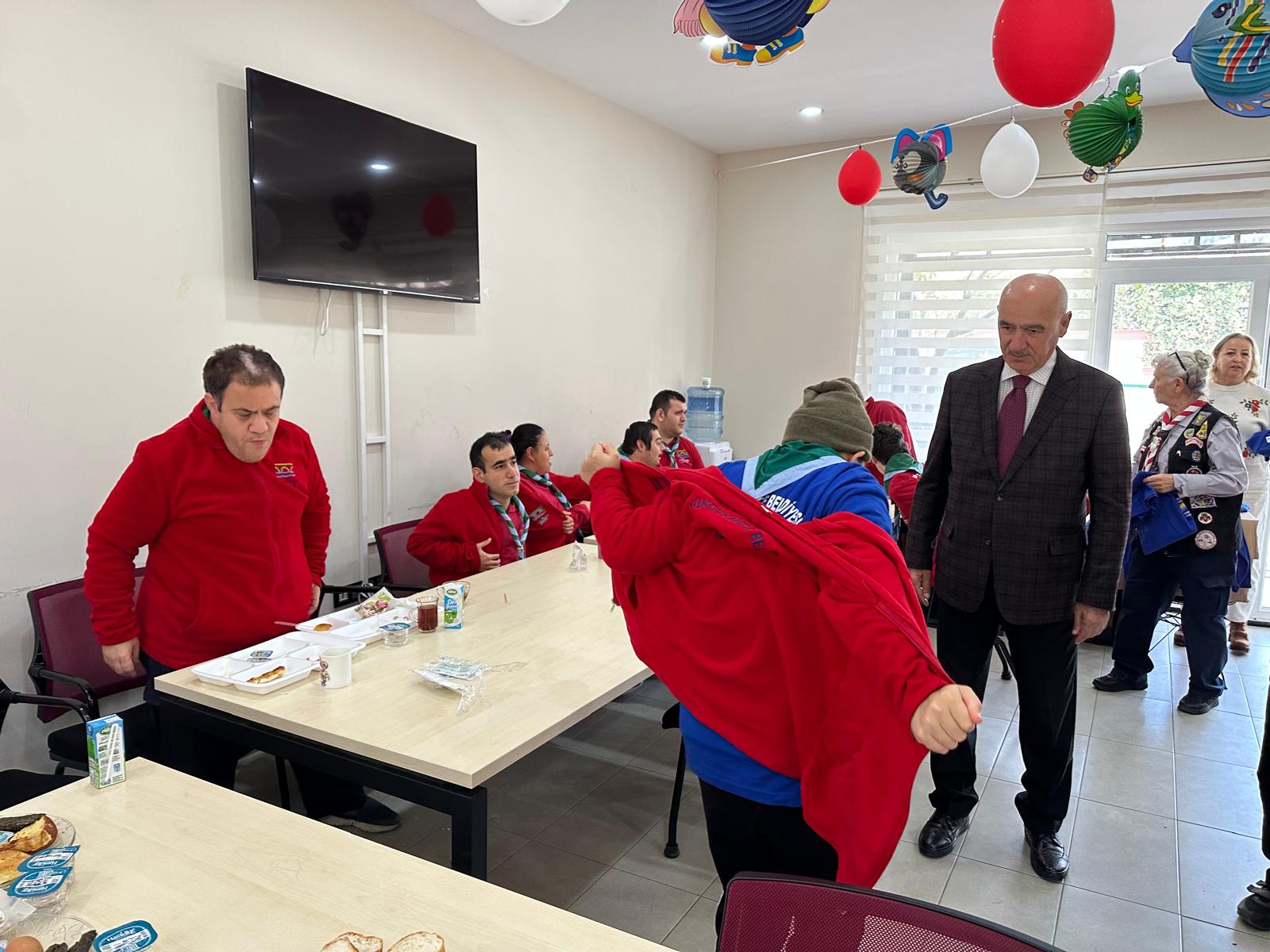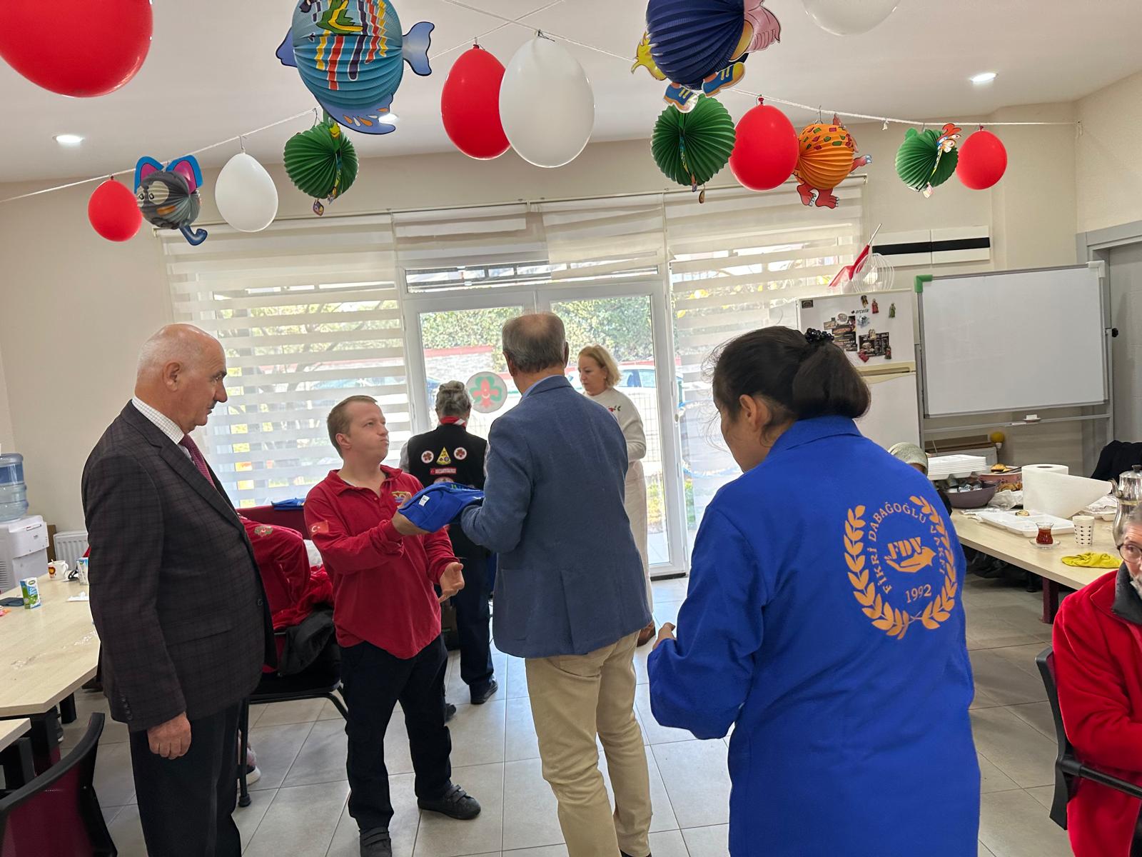 Ziyaret sırasında, vakfımızın logosunun yer aldığı tişörtler Gökkuşağı Dezavantajlılar İzcilik Kulübü ve Eğitim Merkezi üyelerine hediye edildi. Ayrıca, gerçekleştirilen anlamlı destek ve katkılarından dolayı Vakıf Başkanımız Sayın Hakan Dabağoğlu ve değerli eşi Necla Dabağoğlu’na plaket takdim edildi.